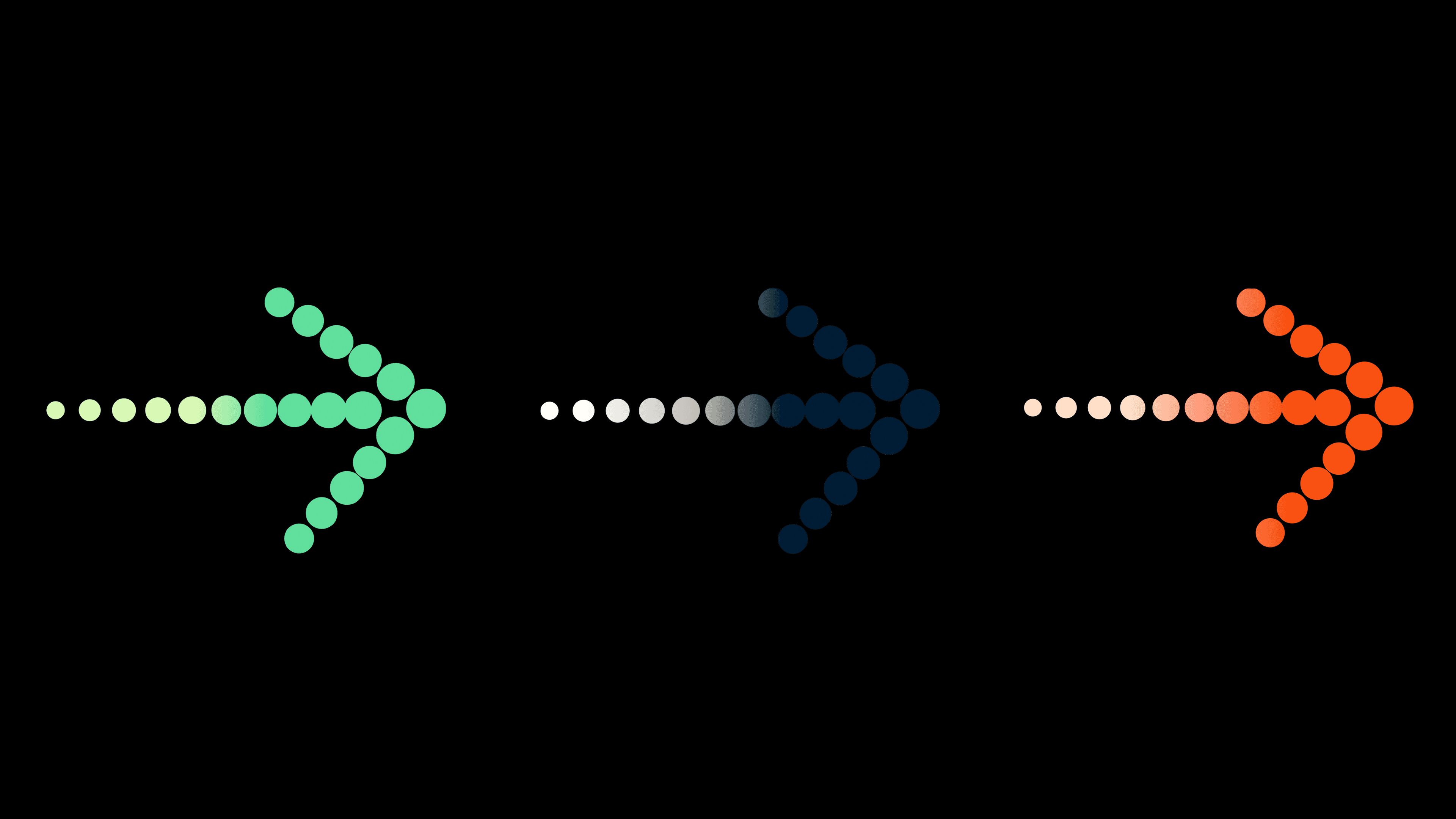 Color: a flexible palette, bright gradients, glowing neon tones, high contrast & high saturation